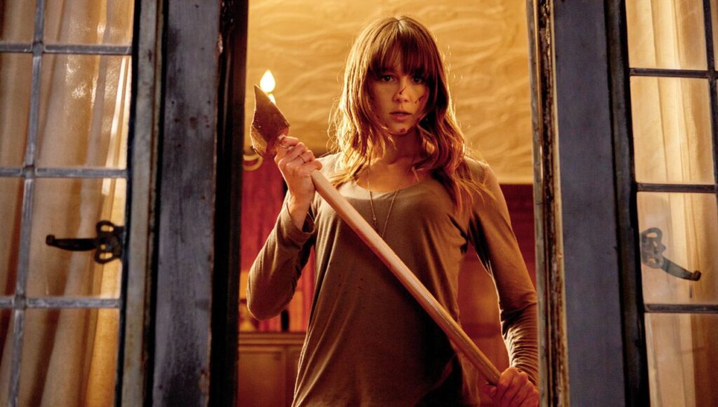 Voordat home invasion horror een nieuw jasje kreeg, was daar You’re Next uit 2011. Een familiebijeenkomst op het platteland verandert in een nachtmerrie wanneer gemaskerde aanvallers het huis bestormen.
