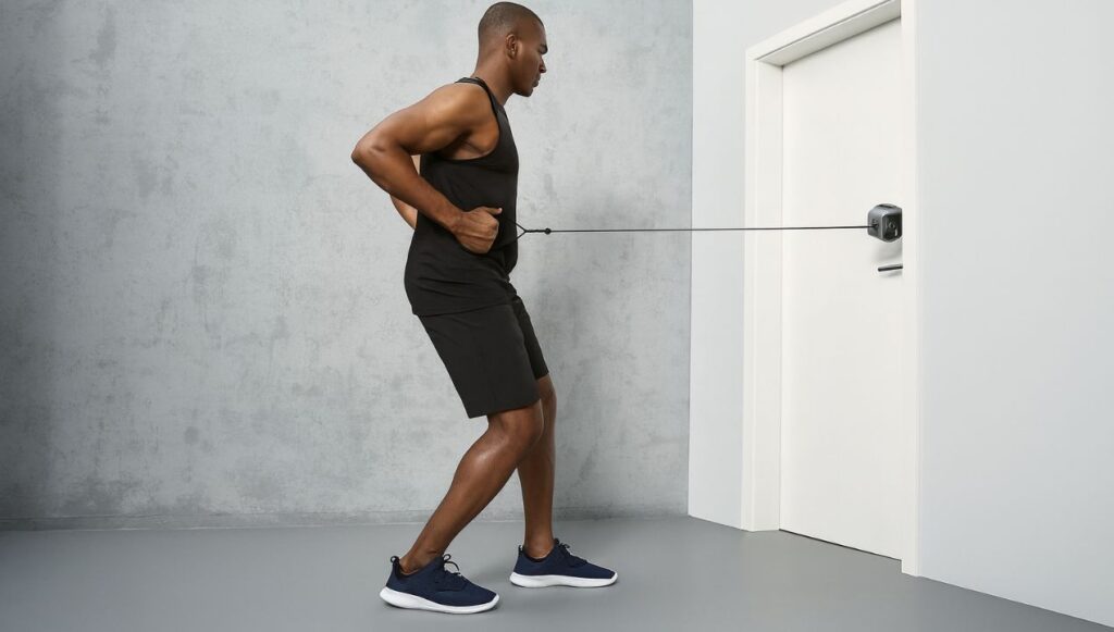 De deuranker maakt het mogelijk om verschillende hoogtes te gebruiken, wat de variatie in je oefeningen vergroot. Zo kun je bovenaan de deur borstdrukken doen, of onderaan roeibewegingen voor je rug.