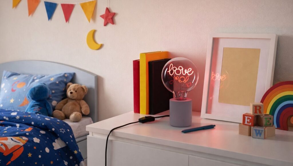 Als je al eerder decorlampen hebt gehad, herken je vast het verschil tussen “leuk voor even” en “blijft staan”. Vergelijk je deze lamp met neonletters of goedkope led-figuurtjes, dan merk je meteen dat hij rustiger is. Neonlampen zijn vaak fel, trekken constant aandacht en kunnen snel vermoeiend worden. Deze Mickey Mouse lamp doet het tegenovergestelde. Hij is aanwezig, maar dringt zich niet op.