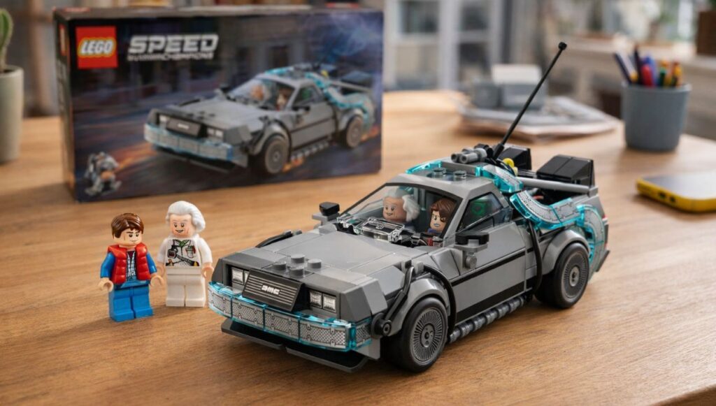Wat meteen opvalt, is dat dit geen kinderachtige set is die alleen leunt op het thema. Alles voelt doordacht. Van de verhoudingen tot de kleine filmreferenties: het is duidelijk dat hier meer is gedaan dan alleen “een auto namaken”. Dit is een model dat je rustig op tafel zet, er even naar kijkt en denkt: ja, dit klopt.