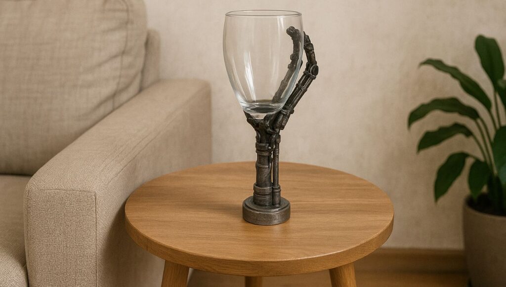 Er zijn van die gadgets die niet alleen opvallen, maar ook een verhaal vertellen. De Nemesis Now Terminator Hand Wijnkelk hoort daar absoluut bij. Als je ooit hebt gedacht dat een gewone wijnglas nét wat te saai is, dan brengt deze kelk daar op spectaculaire wijze verandering in. Met zijn zilverkleurige Terminator-hand die het glas stevig vastgrijpt, voelt het alsof je een stukje filmgeschiedenis in handen hebt letterlijk.