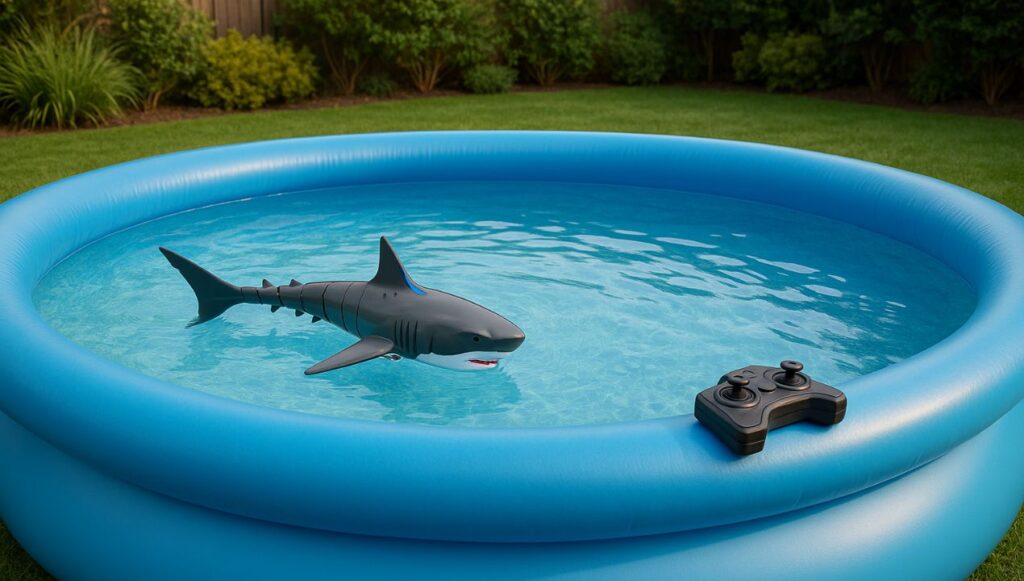Een RC-boot kan indrukwekkend zijn in open water, maar in een zwembad voelt het al snel alsof je te veel ruimte inneemt. De haai daarentegen beweegt compact en subtiel, waardoor hij niet storend is. Bovendien is het onderhoud minimaal: geen gedoe met benzine, geen ingewikkelde instellingen. Gewoon opladen, aanzetten en gaan.