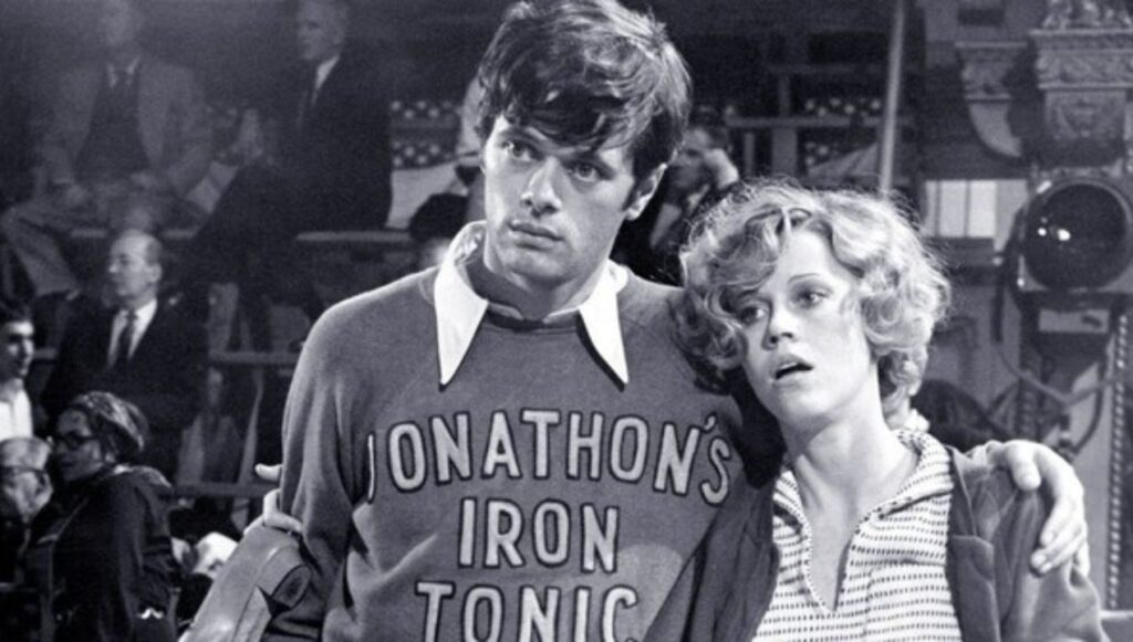 They Shoot Horses, Don’t They? is geen vrolijke film. Het is een mokerslag. Pollack toont een marathon-danswedstrijd als metafoor voor een samenleving die haar mensen uitwringt tot er niets meer over is. De camera blijft dicht op de gezichten. Zweet, vermoeidheid, vertwijfeling. Jane Fonda’s Gloria is cynisch en kwetsbaar tegelijk. Michael Sarrazin speelt een man die zich staande probeert te houden in een wereld die geen vangnet kent.