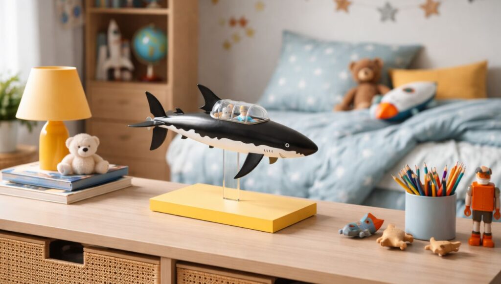 De Kuifje Haaienduikboot statue weet precies wat het moet doen. Het combineert herkenbaarheid met kwaliteit en voegt daar een slimme presentatie aan toe die het geheel tot leven brengt.