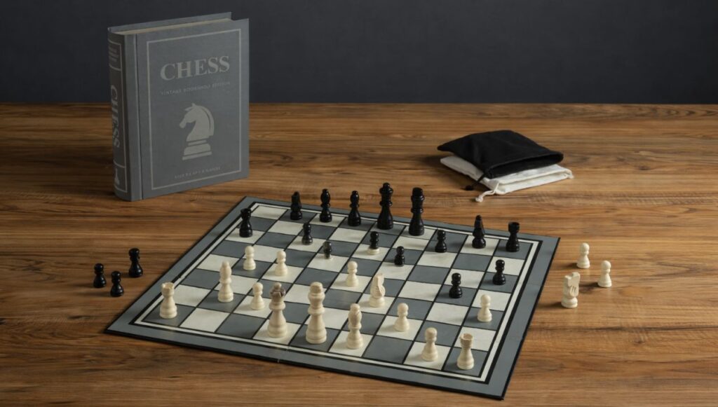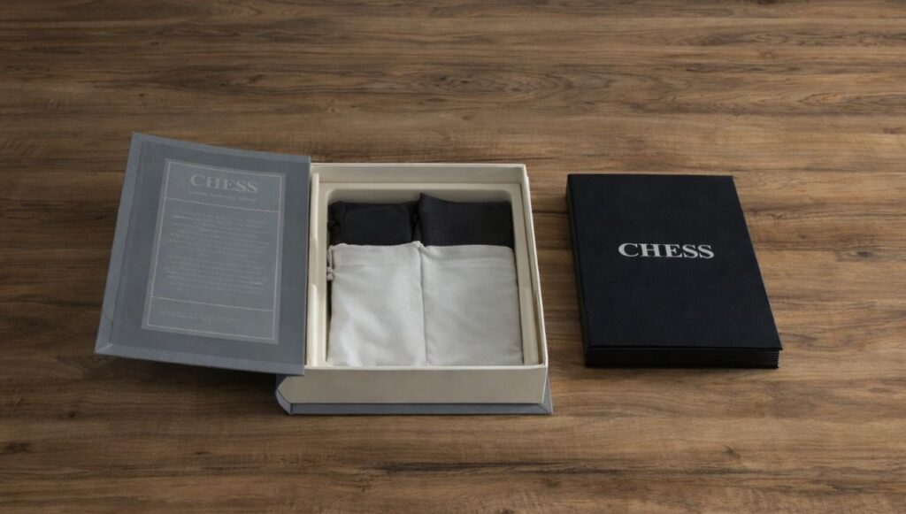 Een standaard reis-schaakbord is vaak licht en handig, maar het voelt meestal ook net wat minder fijn tijdens het spelen. De stukken zijn kleiner, het bord is compact, en je mist dat rustige “klassieke” gevoel. Deze set geeft wél dat klassieke gevoel, maar blijft toch praktisch omdat alles in één boekvormige behuizing zit.