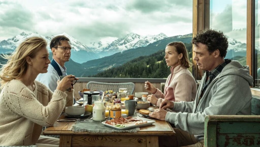De film voelt als een langzaam aangespannen veer. Je hebt de tijd om de setting te proeven, om te wennen aan de dynamiek, om te voelen dat er iets niet uitgesproken wordt. En dan komt die spanning in golfjes. Niet altijd groot, soms klein. Een bezoek dat te onverwacht is. Een herinnering die net te veel detail bevat. Een moment waarop iemand iets zegt en jij denkt: “wacht, dat klopt niet.”