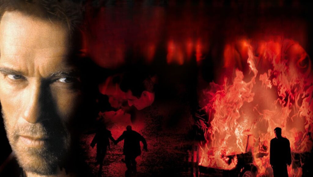 Arnold in een duistere thriller over het einde der tijden. Religieuze symboliek, actie en apocalyptische spanning. Het millennium gevoel zat overal in.