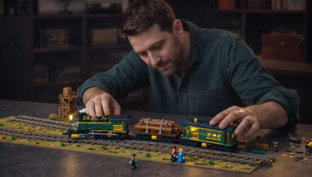 Dit is geen set voor kinderen die hun trein over de vloer willen laten racen. Dit is een set voor mensen die houden van bouwen, kijken en verhalen bedenken. Als je graag iets neerzet dat gesprekken oproept en waar je zelf ook steeds weer naar kijkt, zit je hier goed.
